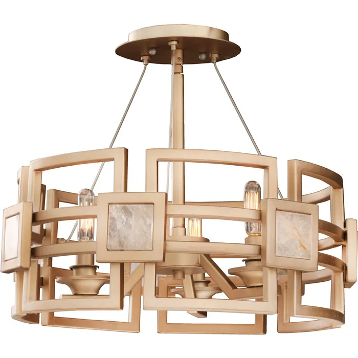 Rock Crystal sets off the Modern Hand-Crafted Frames of the Metropolis family. We chose a Modern Gold Finish to make it a true stand out for any room.3 Light Semi Flush MountE12 Candelabra