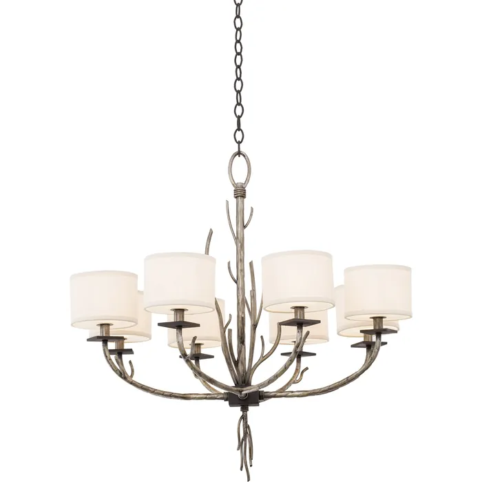 Organic Shapes in Hand Forged Wrought Iron construction. Bronze Jewel Tone with Fabric Shades and Diffuser included.8 Light ChandelierE12 Candelabra