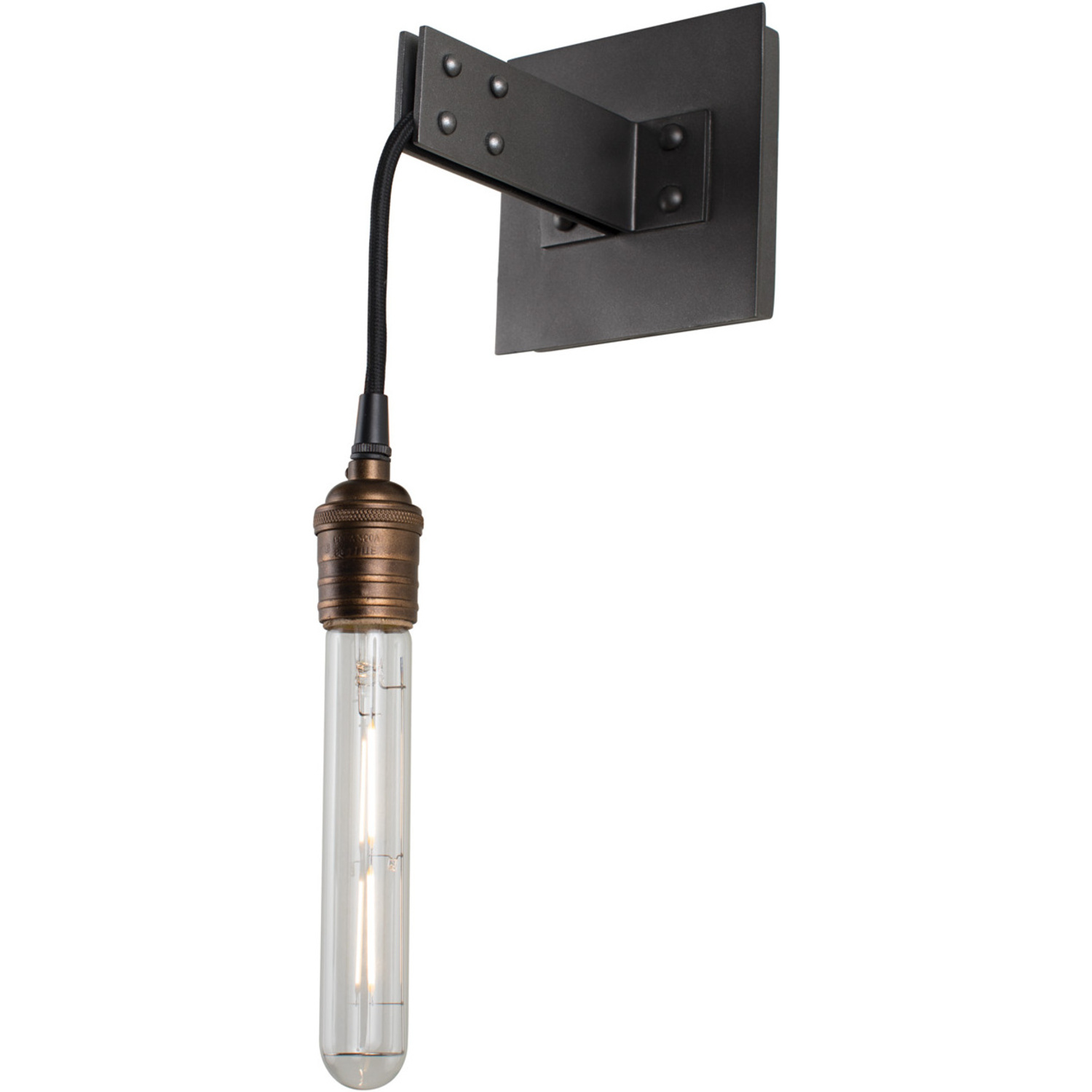 City loft inspired design, featuring heavy gauge steel construction and rivet detail hardware with solid brass patina sockets in a classic industrial Matte Gun Metal finish.1 Light Wall SconceE26 Medium