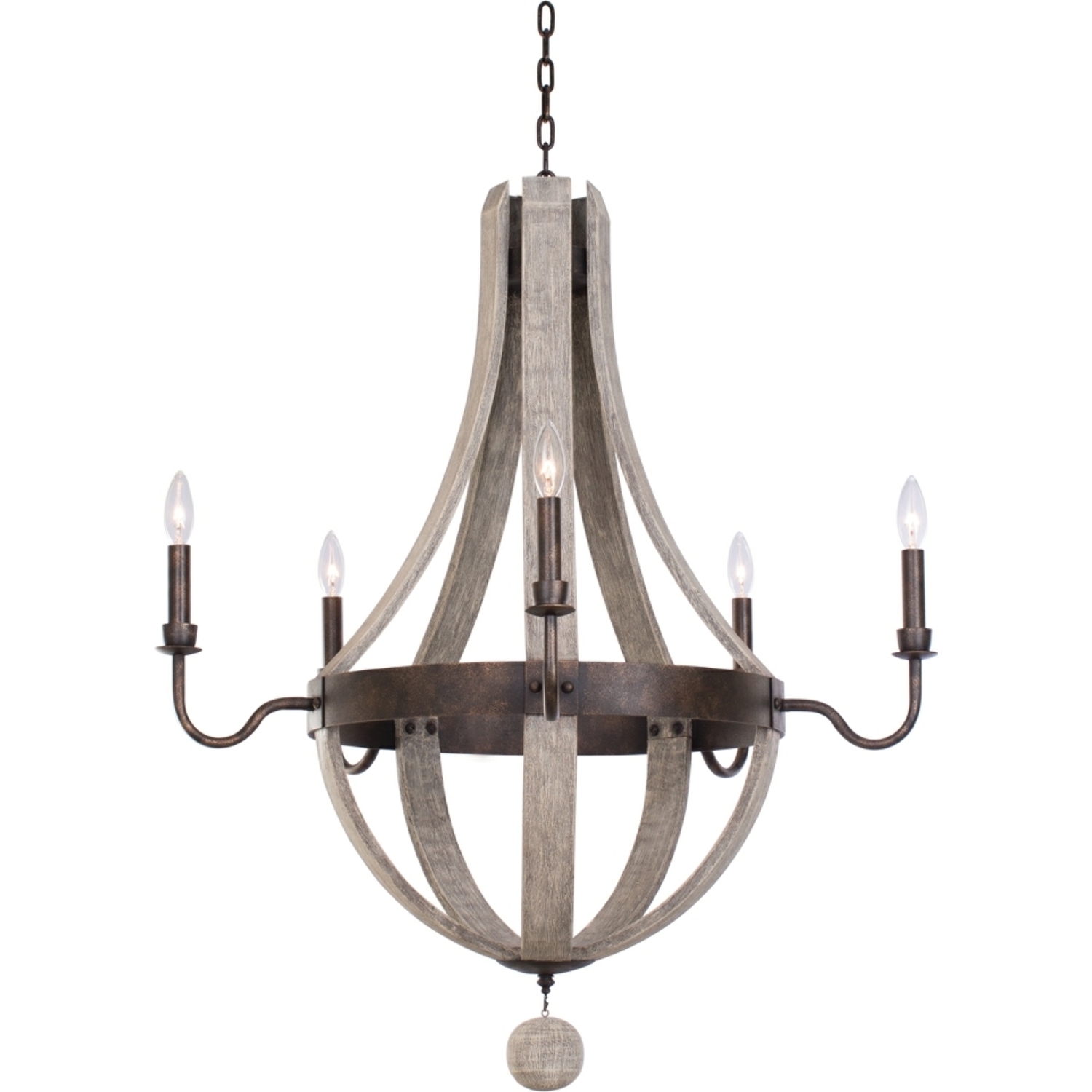 A coastal inspired design constructed of hand forged iron with painted driftwood accents and Florence gold bandings and hardware. Available in many configurations including orbs, chandeliers, wall and semi-flush mounts.5 Light ChandelierE12 Candelabra