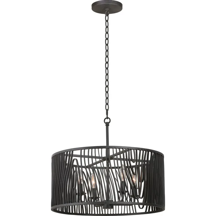 Kalco Morre 21 Inch Convertible Pendant / Semi Flush in Black Iron 507541BI