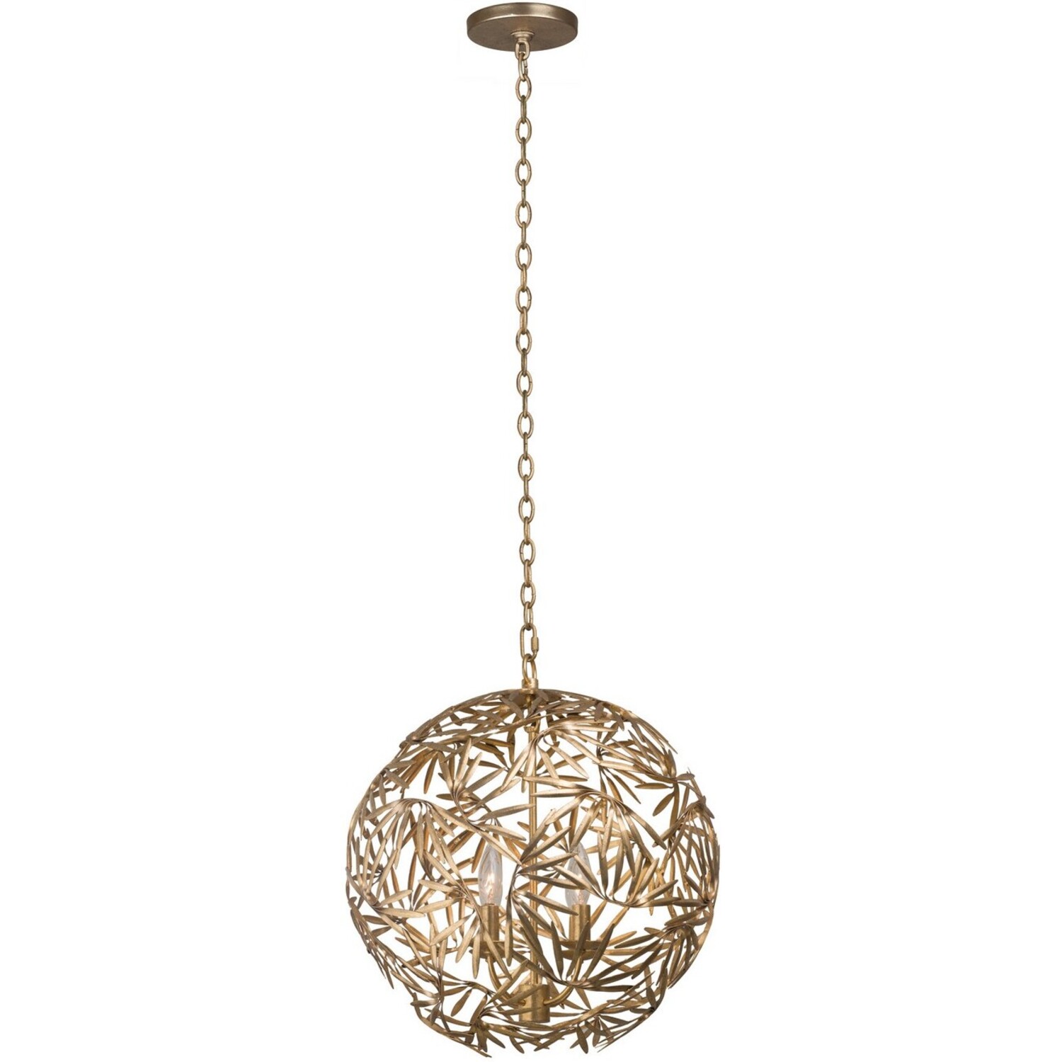 Organically inspired Spherical Leaf patterns in an Oxidized Gold Leaf finish.18" PendantE12 Candelabra