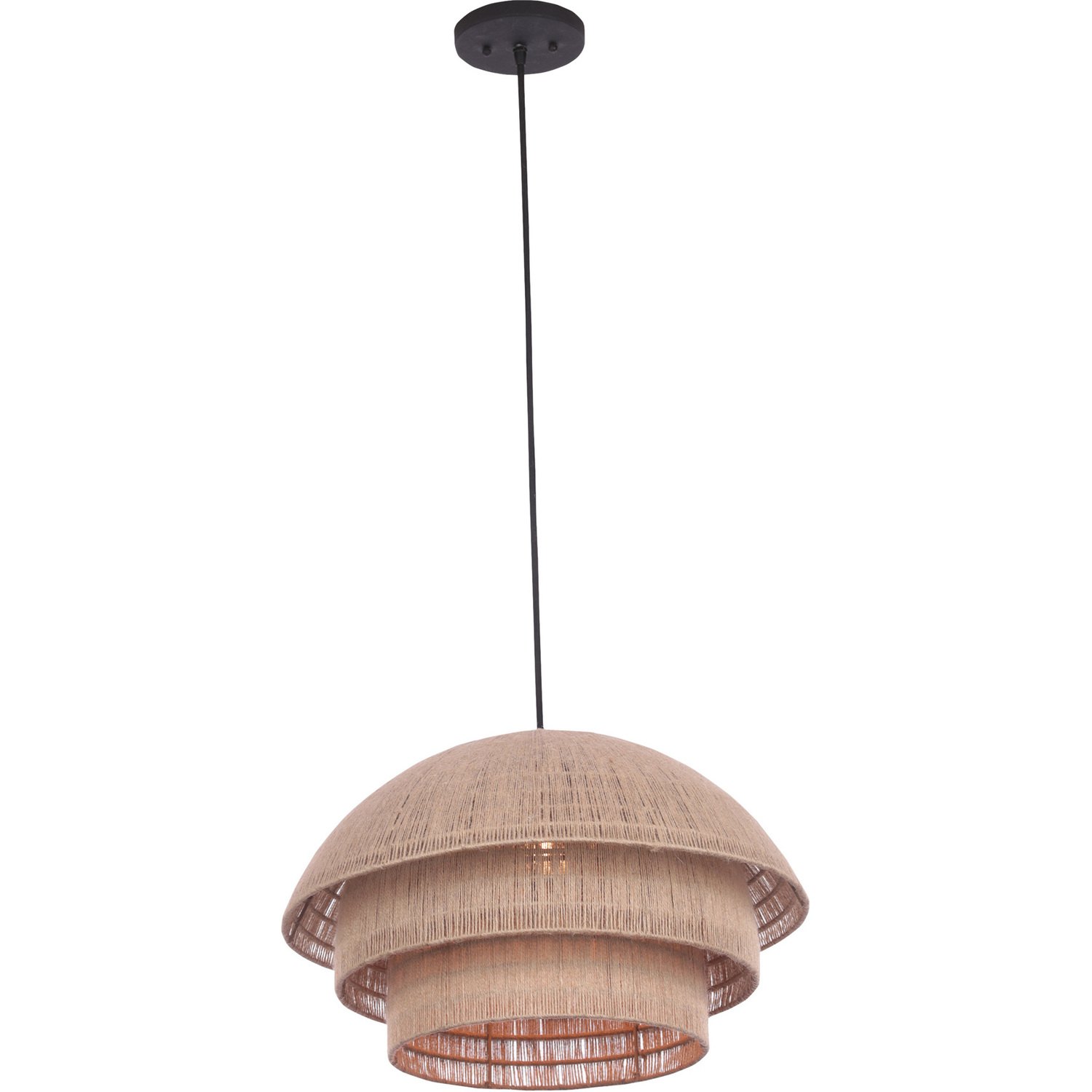Jute takes center stage in the Seychelles collection, which combines three shades to create one statement of natural warmth. Its layered form is simple but elevated, creating a unique look for a flush mount, while the soft glow that comes from the layered jute creates a one-of-a-kind light gradient.20" PendantE26 Medium