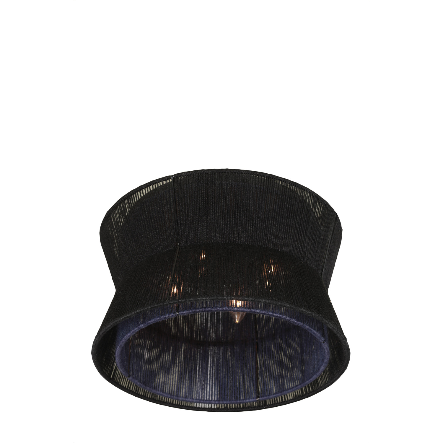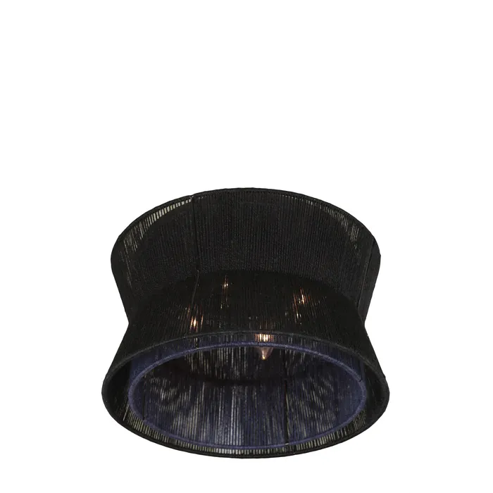 Handmade woven jute shades are transformed with black and blue dye in the Madura collection, which brings an edge to an organic style. These fixtures, which can be a statement or blend into a room’s decor, feature a matte black finish on the frame and cast a warm glow on the walls around it.16" Flush MountE12 Candelabra