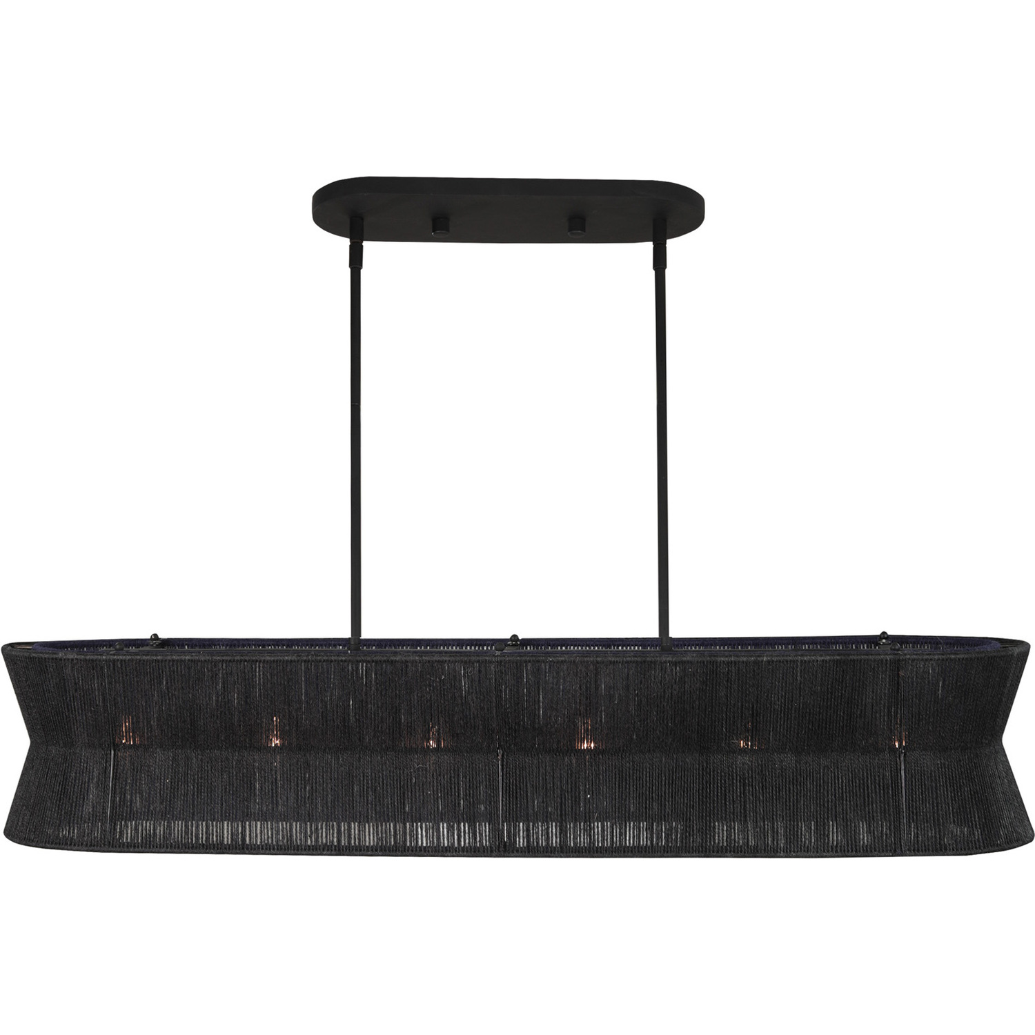Handmade woven jute shades are transformed with black and blue dye in the Madura collection, which brings an edge to an organic style. These fixtures, which can be a statement or blend into a room’s decor, feature a matte black finish on the frame and cast a warm glow on the walls around it.42" IslandE12 Candelabra