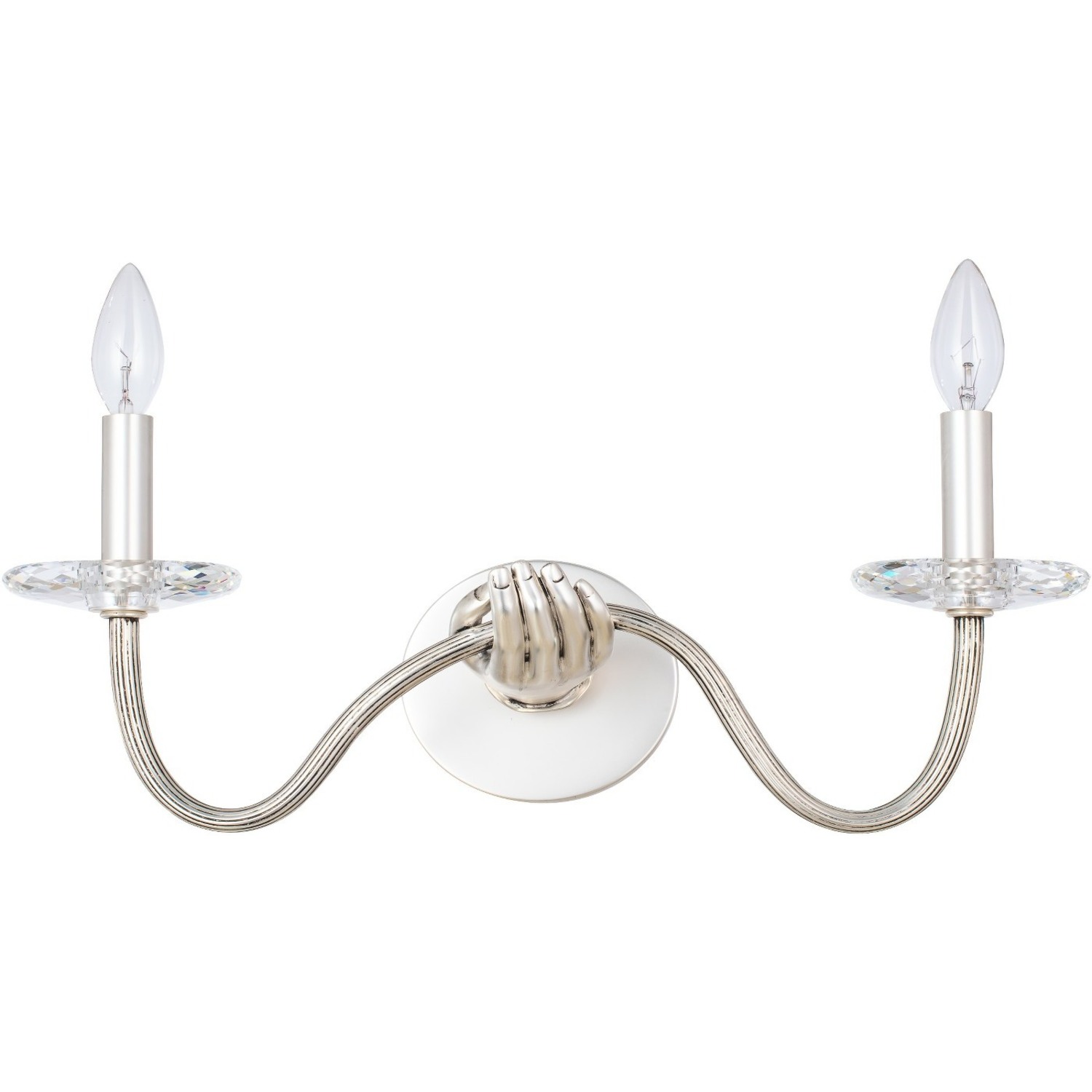 Inspired by the physical form and a sense of surrealism. Venus from the ILUMINE collection by Vanessa Deleon elicits curiosity for lighting as art. Cast brass crafted, featuring clear Firenze crystal florets and bobeches.2 Light Wall SconceE12 Candelabra
