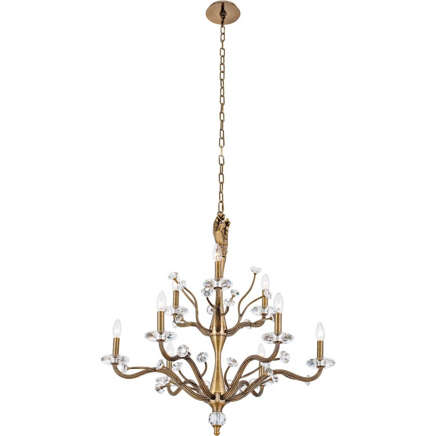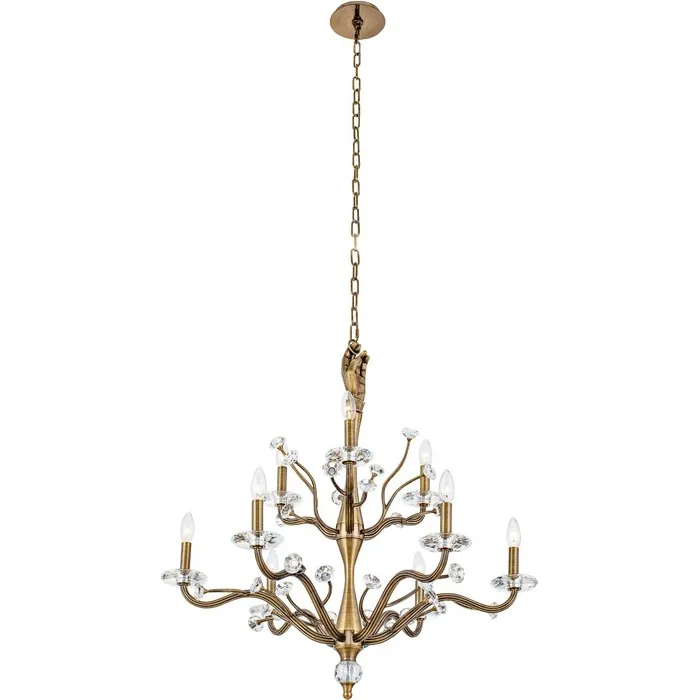 Inspired by the physical form and a sense of surrealism. Venus from the ILUMINE collection by Vanessa Deleon elicits curiosity for lighting as art. Cast brass crafted, featuring clear Firenze crystal florets and bobeches.9 Light 2 Tier ChandelierE12 Candelabra