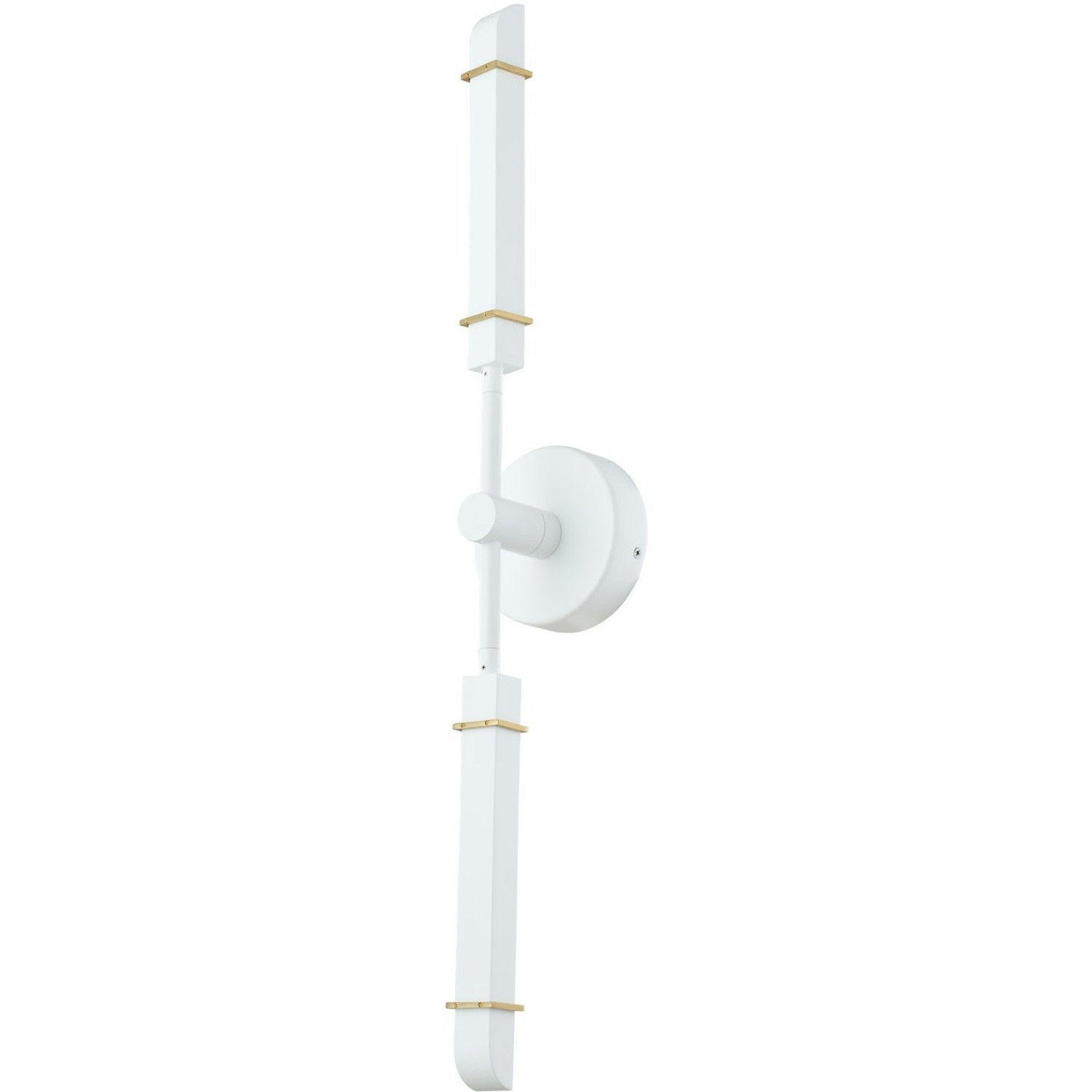 A futuristic low profile silhouette paired with articulating arms for perfet positioniing and petite fixture heads that can be rotated to pint upward of downward to direct light. Presented in a trendy white with brass combination for the ideal conversation piece.Wall SconceLED