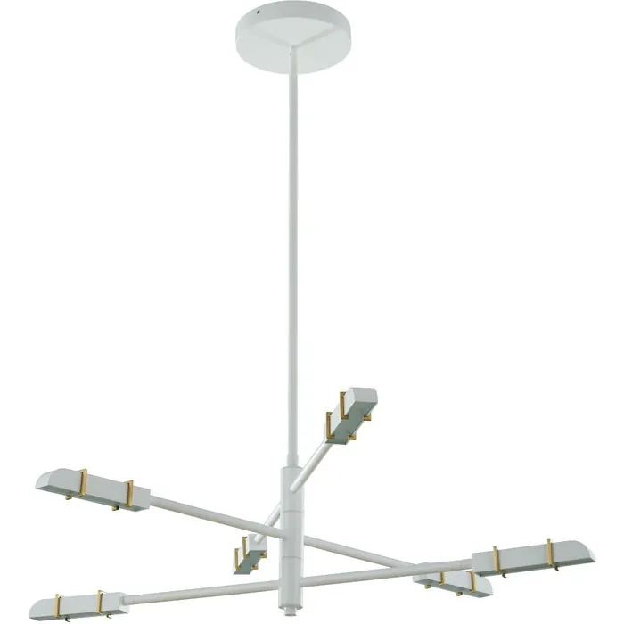 A futuristic low profile silhouette paired with articulating arms for perfet positioniing and petite fixture heads that can be rotated to pint upward of downward to direct light. Presented in a trendy white with brass combination for the ideal conversation piece.6 Light LED ChandelierLED