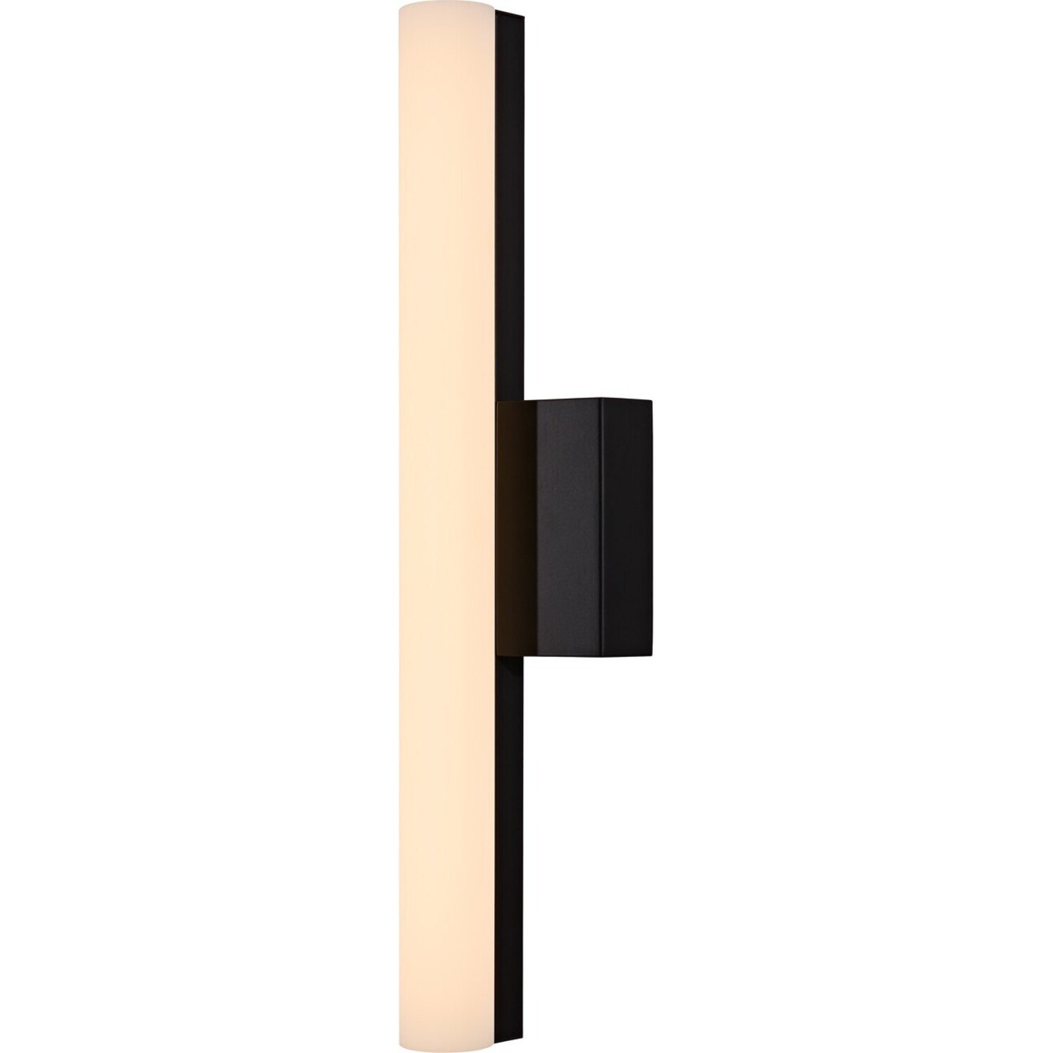 Thick frosted glass cylinder edges are held in place by a Matte Black metal frame that gently conceal the LED housing for a soft glow.LED Wall SconceLED