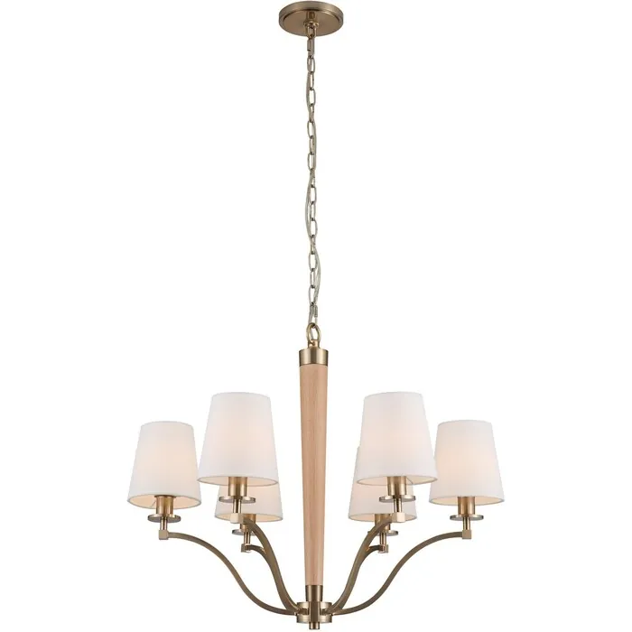 The transitional Curva collection features a gracefully tapered light wood column paired with square brass extruded arms that highlight the careful craftsmanship on the Brushed Champagne Gold frame matched with off-white linen shades.6 Lt ChandelierE12 Candelabra