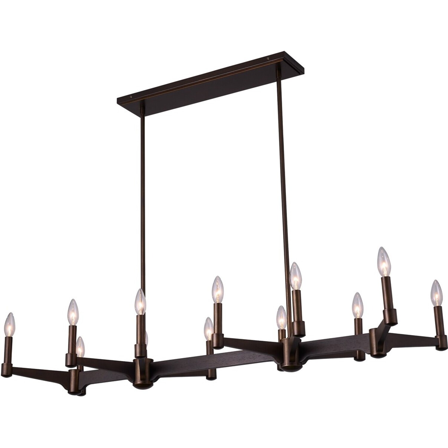 The contemporary collection with a monochromatic twist of natural materials. The dark stained wood is paired with deep Vintage Bronze metal accent to create simple rustic sophistication.12 Lt IslandE12 Candelabra