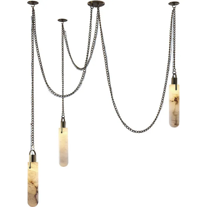 Add dramatic style and design to any space with the Flint Collection of Natural Alabaster and LED drop pendants and coordinating wall sconce. Suspended by beautiful jewelry chain, this fixture is flexible enough to install anywhere. A mix of old and new style, this beauty can be used in both a modern or traditional setting. It's your arrangement!3 Light LED Multi-Drop PendantLED