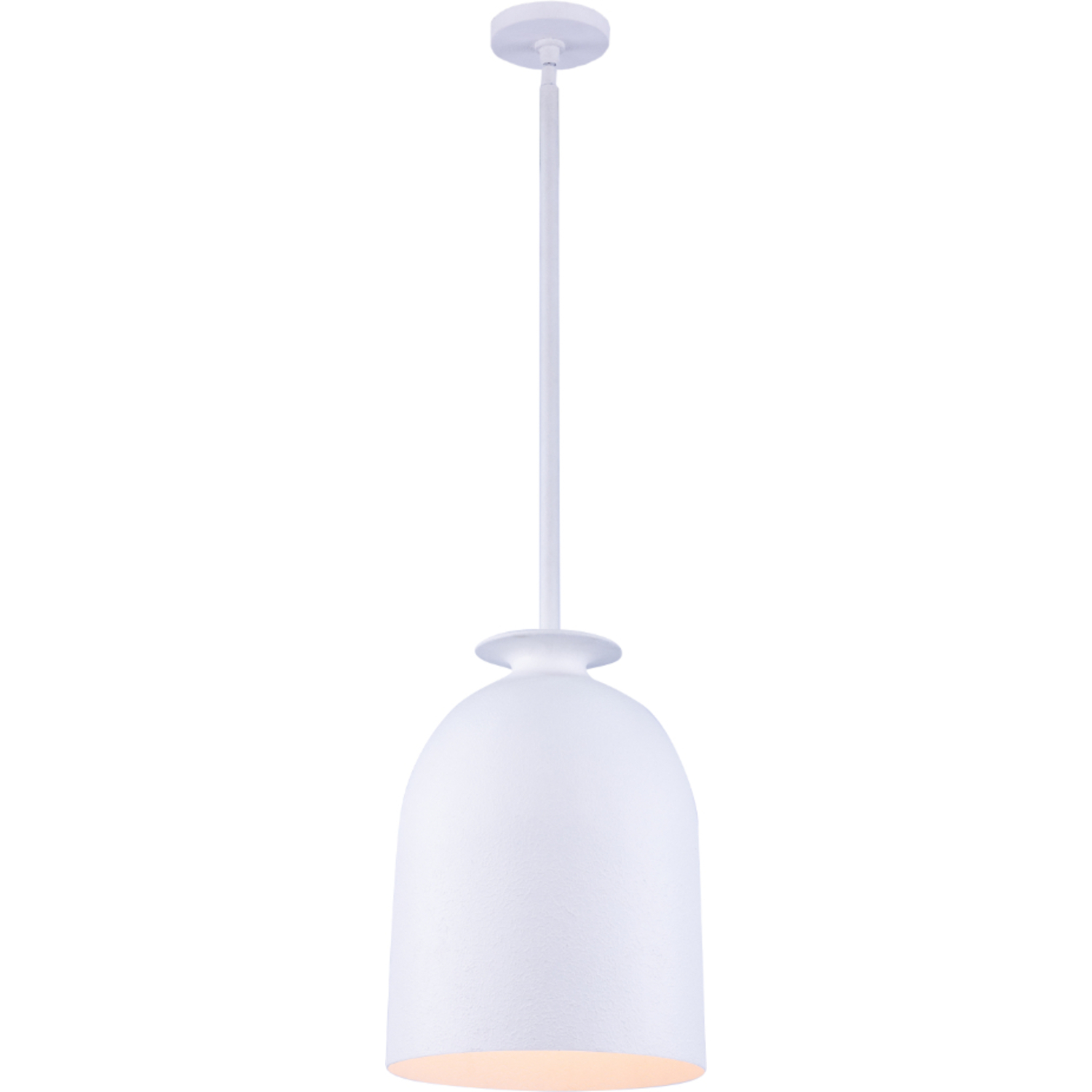 Textured Matte White Gesso adds softness and natural textures. Features a simple and slightly modern silhouette with a soft glow. Developed in Italy and used for centuries to prepare surfaces for painting, white Gesso is free of toxins and an environmentally safe finish used by artisans and craftsman worldwide.12" Mini PendantE26 Medium