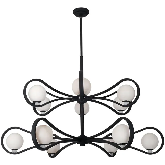 Explore the timeless elegance of Elliptical. Crafted with Alabaster stone globes and clean flowing lines. The Matte Black finish adds a dash of distinction with looping forms that naturally draw your eye in. When lit, the balanced orbs cast a relaxed yet captivating glow.2 Tier LED PendantG9 LED