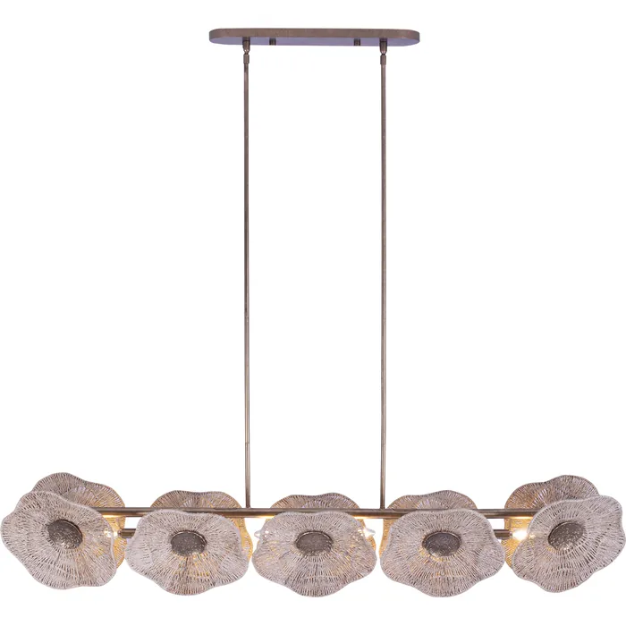 Bring the calm and beauty of nature indoors with Poppy. Floral inspired, this collection of lights seamlessly blends natural materials. Hand crafted using natural Abaca fiber, authentic acacia wood, and steel for a touch of warm modern charm.Island LightE26 Medium