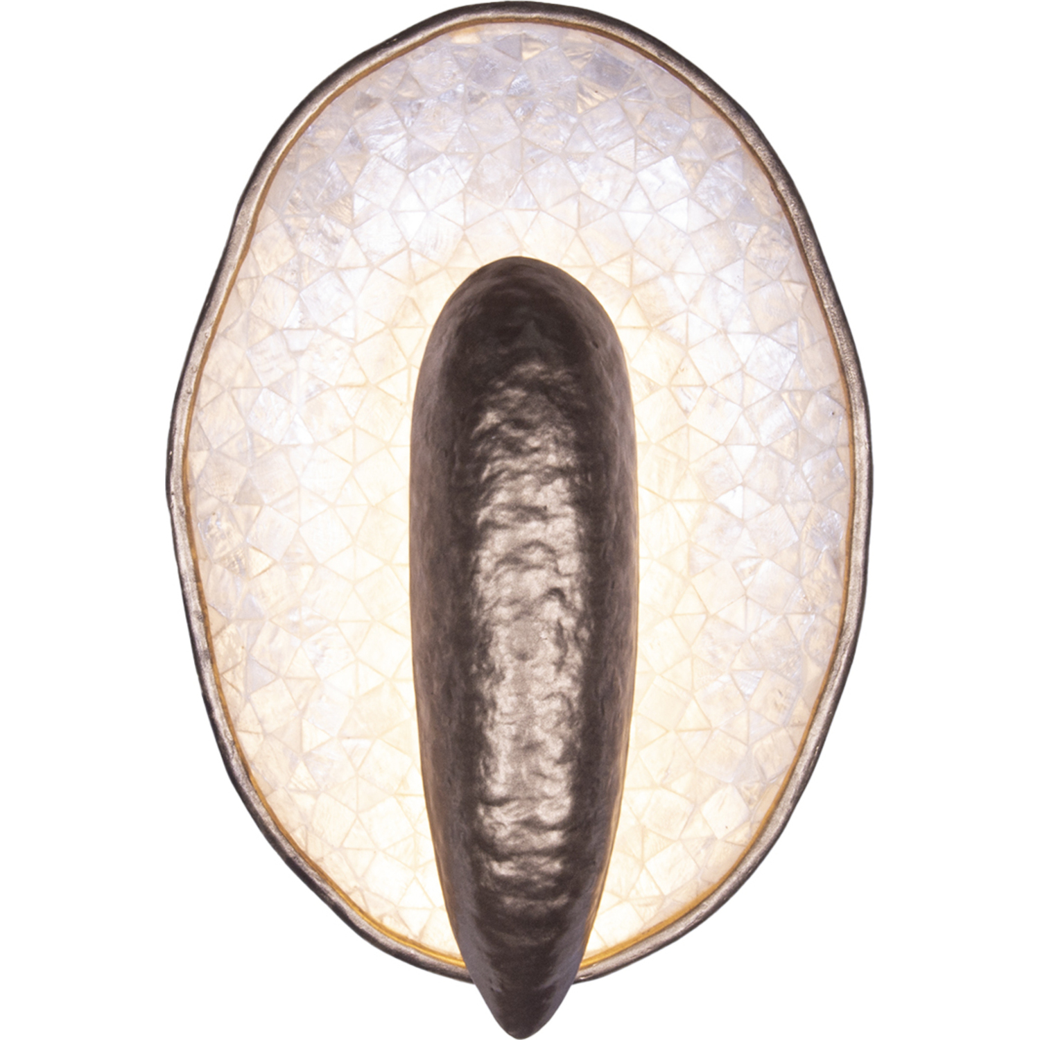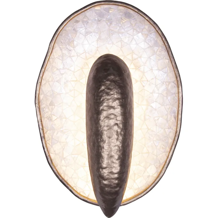 Inspired by oyster shells, the Spat wall sconce family features an uneven natural edge with an iridescent natural Capiz Shell interior. The driverless LED technology offers an indirect light that bounces off the shells to illuminate its surroundings. Offered in a Pearlized Antique Brass finish and can be hung both upside down and sideways.1 Light LED Wall SconceIntegrated LED