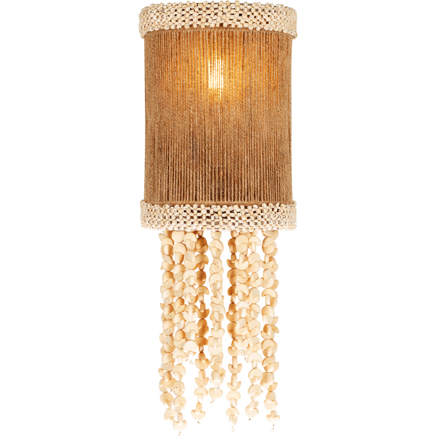 Crafted from an exquisite blend of natural materials, the Naturale Collection introduces a light and visually inviting coastal appeal. This collection showcases hand-wrapped Jute rope, wooden moon-shaped beads, and textured coco bead bands adorning the top and bottom rims of the shade. Each piece, meticulously handmade in a neutral color palette, seamlessly integrates into most nature-inspired spaces, embodying a Biophilic design aesthetic. The collection is beautifully finished in a natural Jute hue. _________________ [WORDPRESS_PDF]WALL SCONCEE12 Candelabra