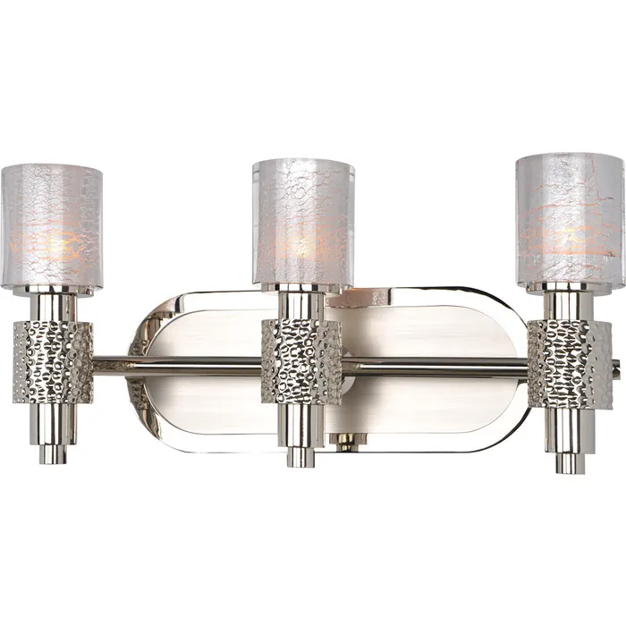 Solid Brass Frame, Two Toned Plated Finish, Hammered Metal Accent3 Light BathG9 LED