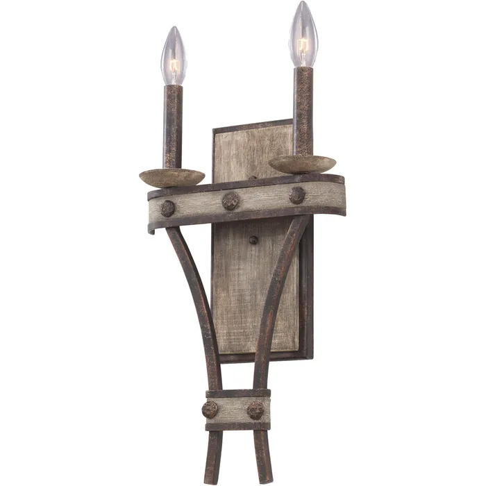 The Coronado Collection features hand wrought iron finished in Florence Gold finish with solid wood accents.2 Light Wall BracketE12 Candelabra