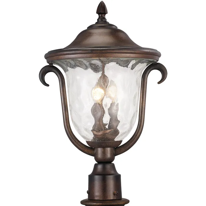 The Santa Barbara Collection was inspired by Colonial Mexico’s Mission Churches and Cathedrals. The long history of hand-crafted wrought iron, shared by both Mexico and Kalco, come together to create a series of outdoor lighting pieces that feature Kalco’s exclusive Burnished Bronze, Textured Matte Black finishes and Clear Seeded Hammered Glass shades.Outdoor 3 Light Medium Post Mount LanternE12 Candelabra