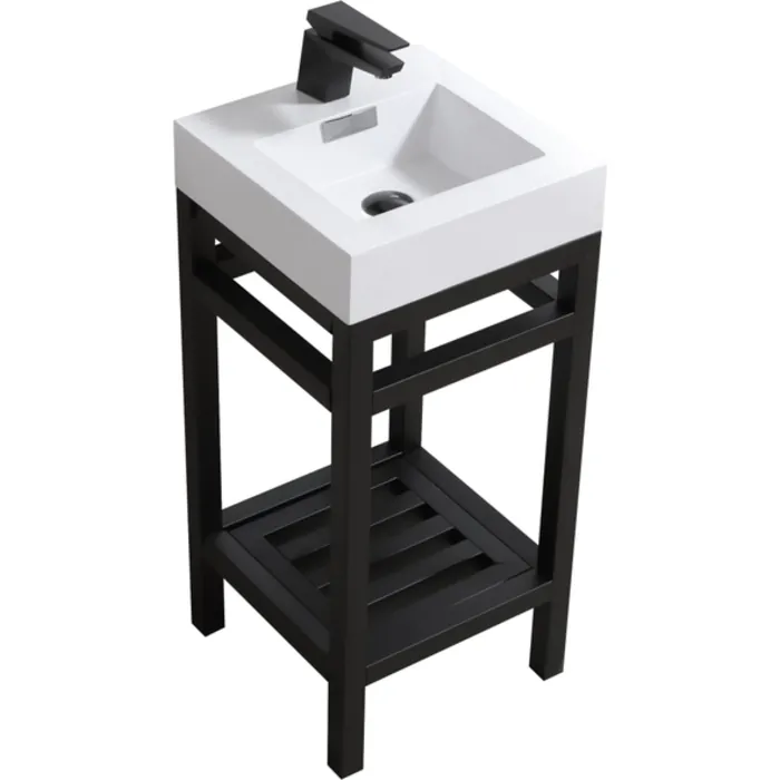 Kubebath Cisco 16 inch Stainless Steel Console With Acrylic Sink - Matt Black AC16-BK