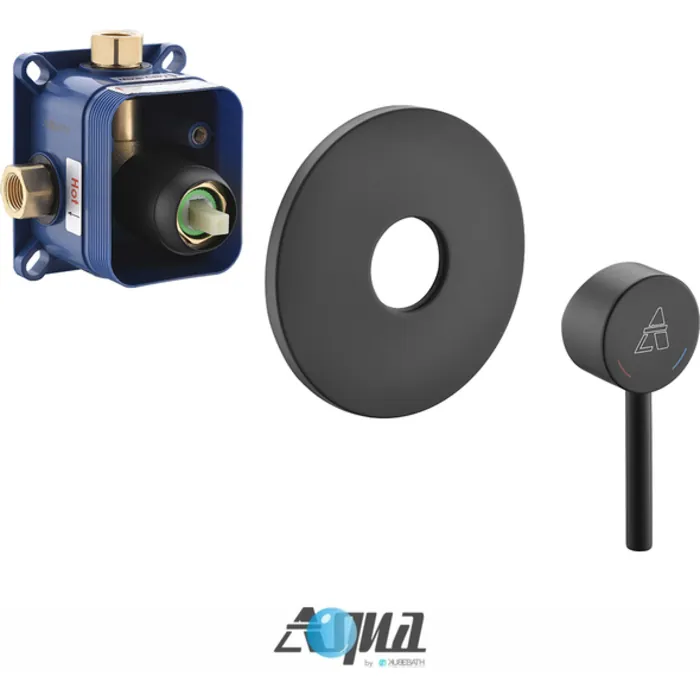 Aqua Rondo by KubeBath Matte Black 1-Way Rough-In Shower Valve With Cover Plate, Handle and Diverter