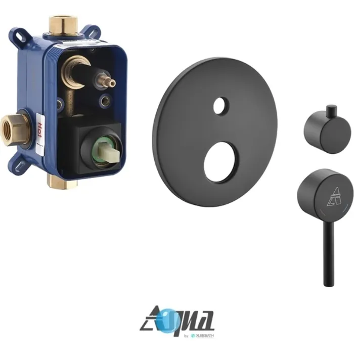 Aqua Rondo by KubeBath Matte Black 2-Way Rough-In Shower Valve With Cover Plate, Handle and Diverter