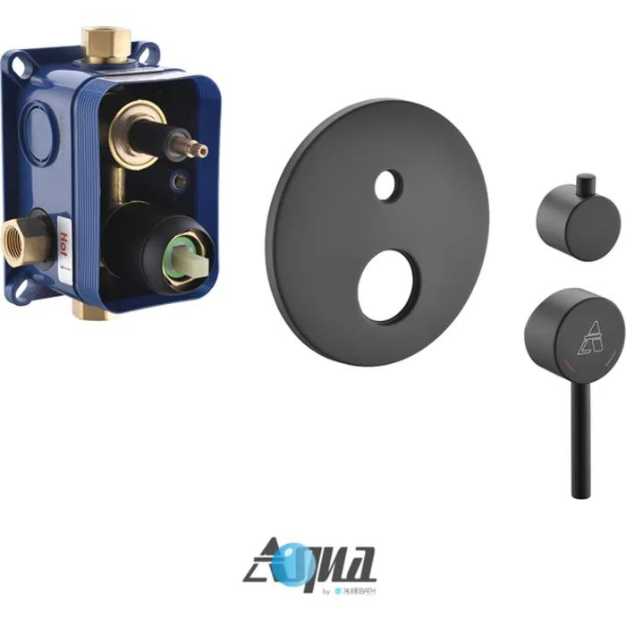 Aqua Rondo by KubeBath Matte Black 3-Way Rough-In Shower Valve With Cover Plate, Handle and Diverter