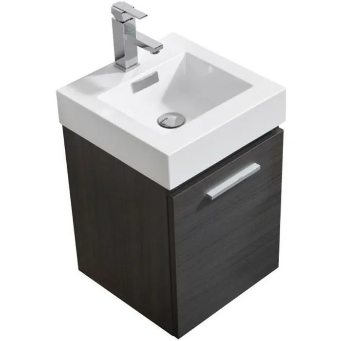 Kubebath Bliss 16 inch Gray Oak Wall Mount Modern Bathroom Vanity BSL16-GO