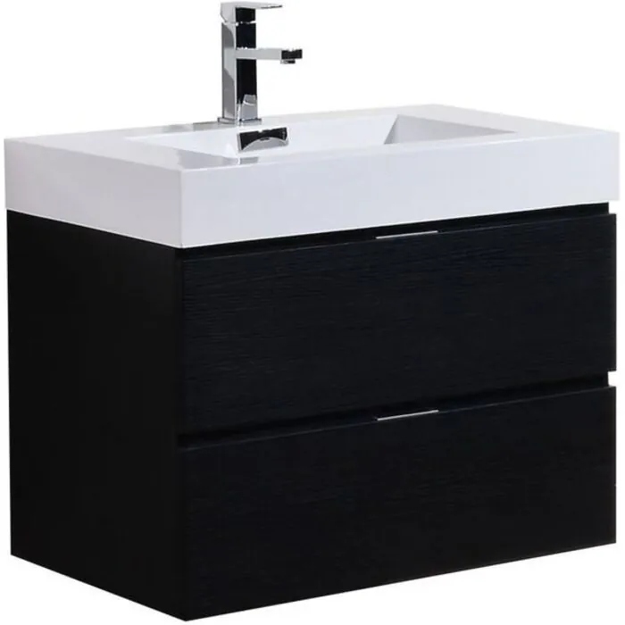 Kubebath Bliss 30 inch Black Wall Mount Modern Bathroom Vanity BSL30-BK