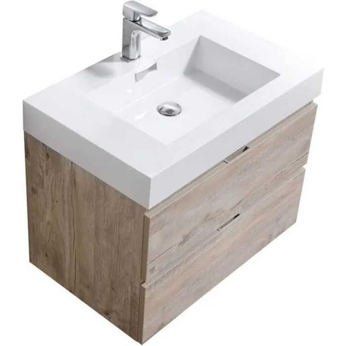 The Bliss is one of the most elegant modern Bathroom Vanities around. This 30" model comes with a reinforced Acrylic sink, Marine Veneer Constructed Console that is fully Moisture and Water proof, with high quality European Hardware, that provides smooth soft-closing operation on two fully functional drawers.
