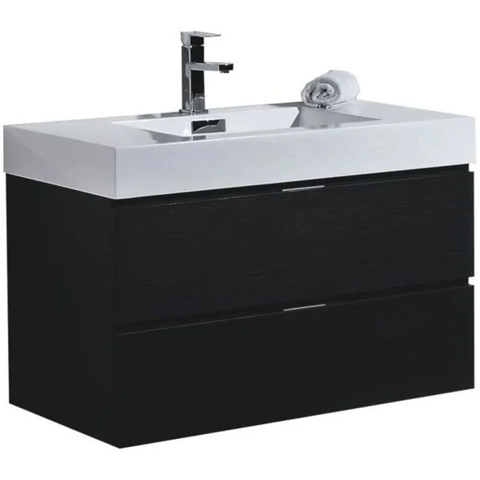 Kubebath Bliss 36 inch Black Wall Mount Modern Bathroom Vanity BSL36-BK