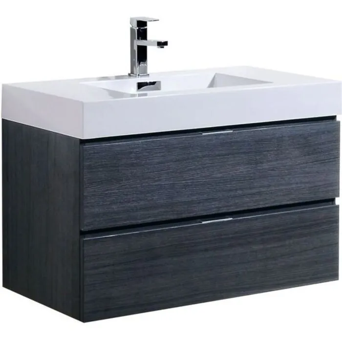 Kubebath Bliss 36 inch Gray Oak Wall Mount Modern Bathroom Vanity BSL36-GO