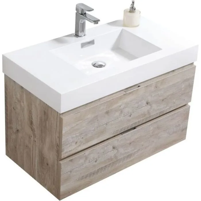 The Bliss is one of the most elegant modern Bathroom Vanities around. This 36" model comes with a reinforced Acrylic sink, Marine Veneer Constructed Console that is fully Moisture and Water proof, with high quality European Hardware, that provides smooth soft-closing operation on two fully funtional drawers.