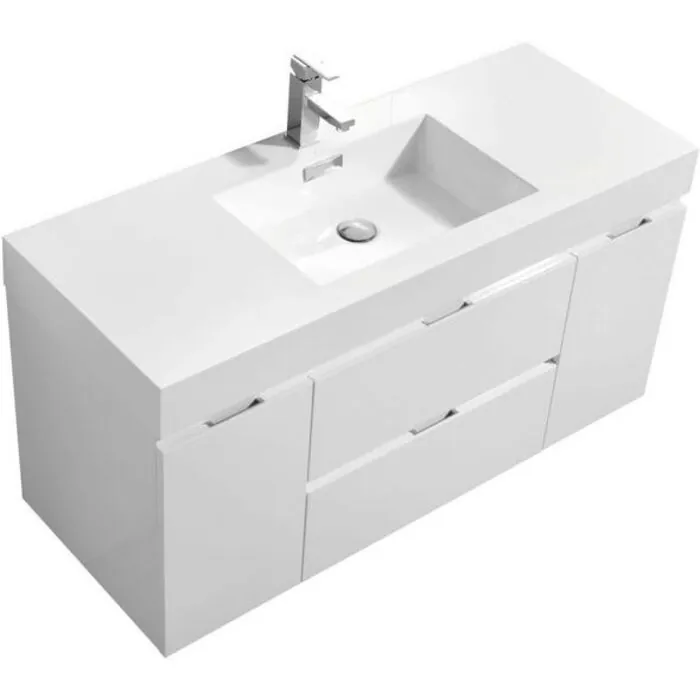 The Bliss is one of the most elegant modern Bathroom Vanities around. This 48" model comes with a reinforced Acrylic sink, Marine Veneer Constructed Console that is fully moister and water proof, with high quality European DTC Hardware, that provides smooth soft-closing operation drawers.