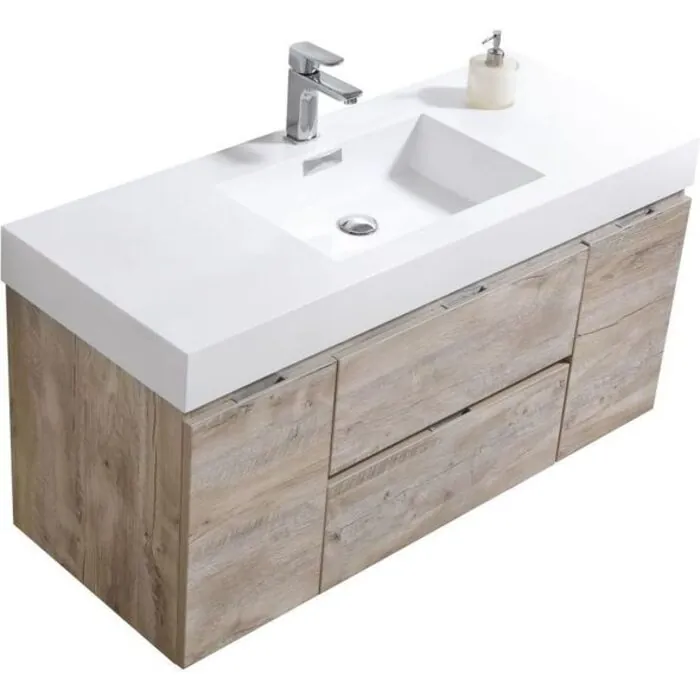 The Bliss is one of the most elegant modern Bathroom Vanities around. This 48" model comes with a reinforced Acrylic sink, Marine Veneer Constructed Console that is fully Moisture and Water proof, with high quality European Hardware, that provides smooth soft-closing operation. It features two Doors and two fully funtional drawers.