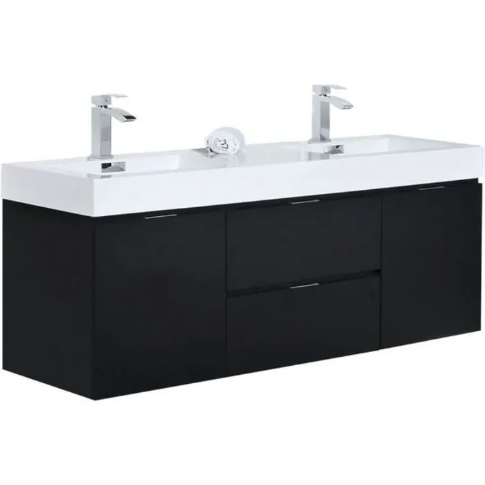 Kubebath Bliss 60 inch Double Sink Black Wall Mount Modern Bathroom Vanity BSL60D-BK