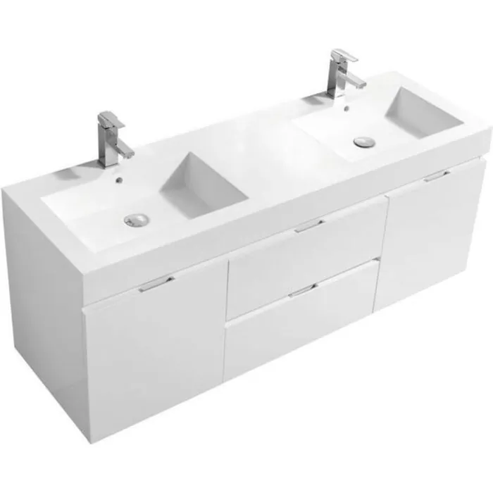 The Bliss is one of the most elegant modern Bathroom Vanities around. This 60" model comes with a reinforced Acrylic sink, Marine Veneer Constructed Console that is fully moister and water proof, with high quality European DTC Hardware, that provides smooth soft-closing operation drawers.