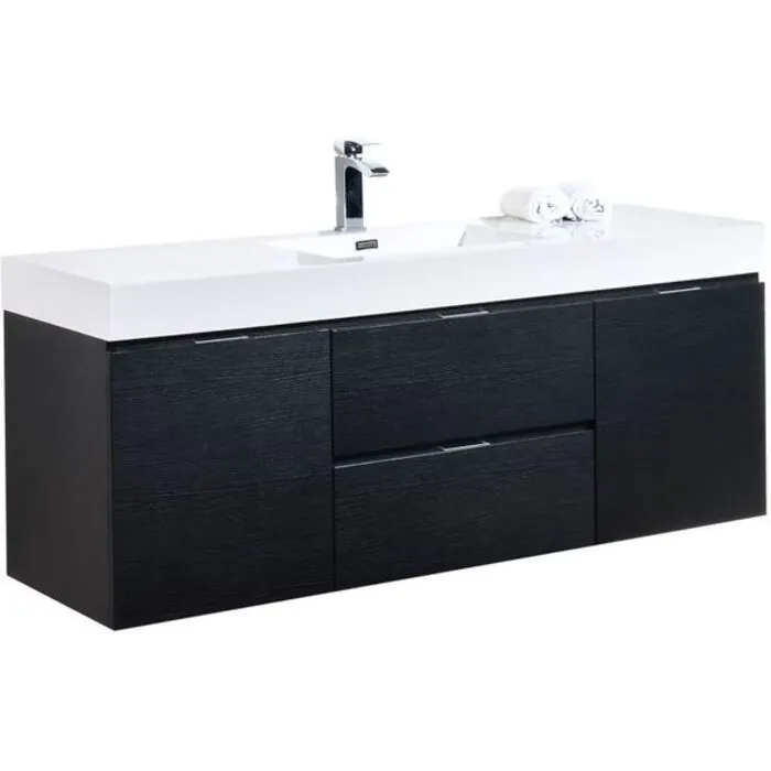 Kubebath Bliss 60 inch Single Sink Black Wall Mount Modern Bathroom Vanity BSL60S-BK