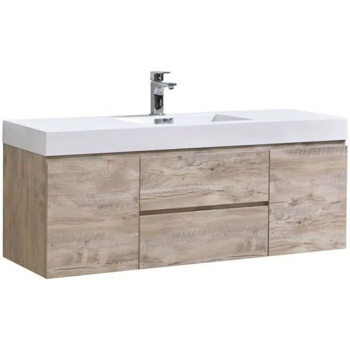 Kubebath Bliss 60 inch Single Sink Nature Wood Wall Mount Modern Bathroom Vanity BSL60S-NW
