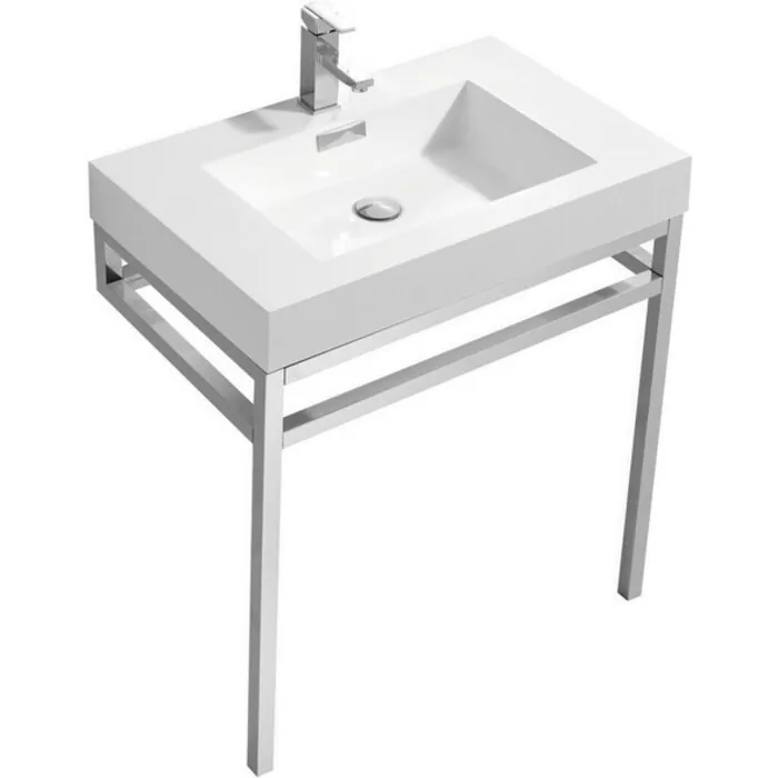 Kubebath Haus 30 inch Stainless Steel Console W/ White Acrylic Sink - Chrome CH30