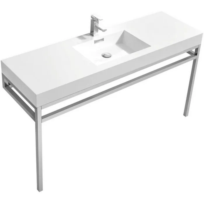 Kubebath Haus 60 inch Single Sink Stainless Steel Console W/ White Acrylic Sink - Chrome CH60S
