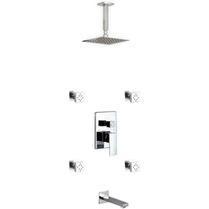 AQUA PIAZZA 8" RAIN SHOWER HEAD W/TUB FILLER & MASSAGE BODY JETS