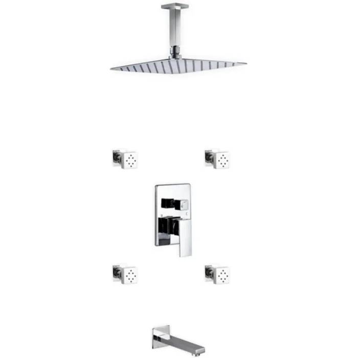AQUA PIAZZA 12" RAIN SHOWER HEAD W/TUB FILLER & MASSAGE BODY JETS