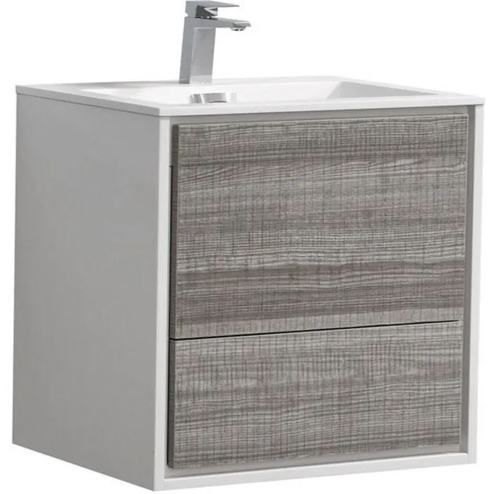 Kubebath Delusso 24 inch Ash Gray Wall Mount Modern Bathroom Vanity DL24-HGASH