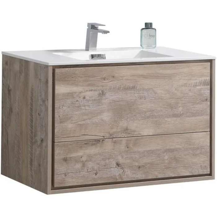 Kubebath Delusso 36 inch Nature Wood Wall Mount Modern Bathroom Vanity DL36-NW