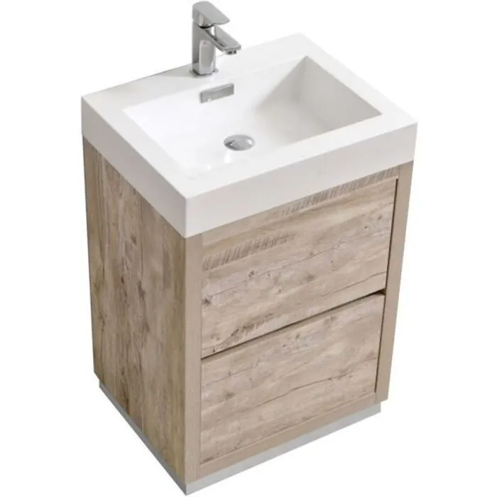 The Bliss is one of the most elegant modern Bathroom Vanities around. This 24" model comes with a reinforced Acrylic composite sink, Wood Veneer Constructed Console with high quality European Hardware that provides easy click, Push-Open drawers.