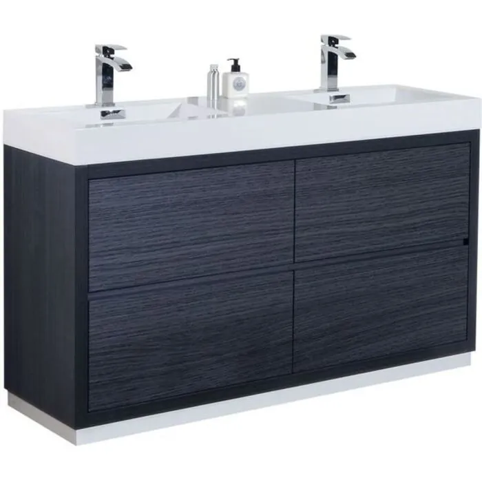 The Bliss is one of the most elegant modern Bathroom Vanities around. This 60" model comes with a reinforced Acrylic sink, Marine Veneer Constructed Console that is fully moister and water proof, with high quality European DTC Hardware, that provides smooth push-open operation drawers.