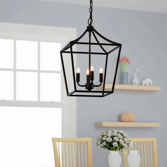 The LAZZUR Iton 4 Light 12 in. Matte Black Pendant is perfect for a vintage and classic look. With its open-cage design paired with a geometric framework, the pendant allows light to travel to all corners of the room. Make the traditional and vintage look perfect with 4 E12 candelabra lightbulbs (not included). The height can be adjusted thanks to its 59 in. long adjustable chain, which makes it perfect for high or low-rise ceilings. The LAZZUR Iton Matte Black Pendant is best fit in a hallway or entrance to your home.